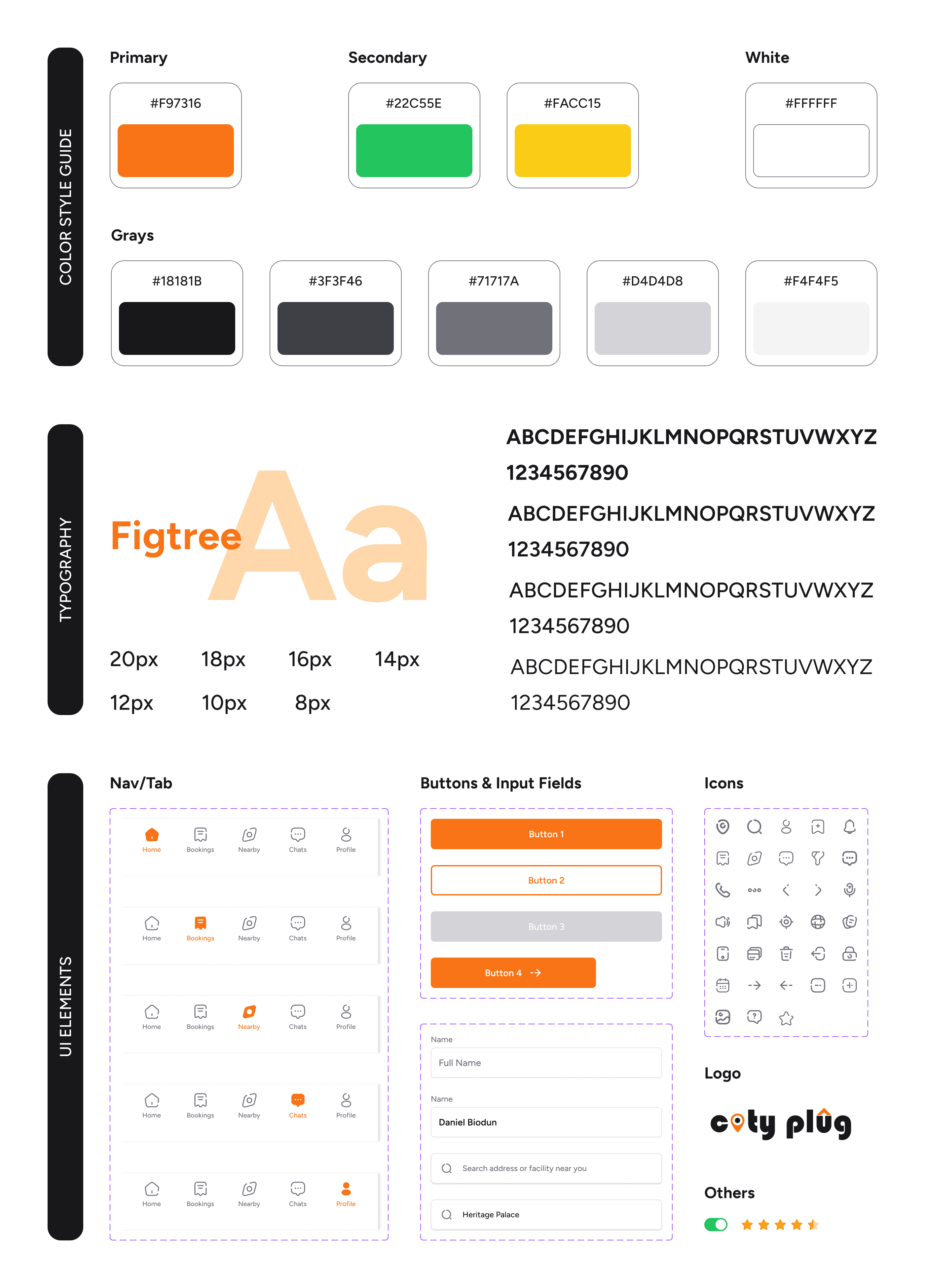 Typography: Figtree was chosen for its modern, geometric sans-serif style that balances friendliness with clarity. Its scalable sizes maintain readability across headers, body text, and labels, reinforcing hierarchy and consistency.