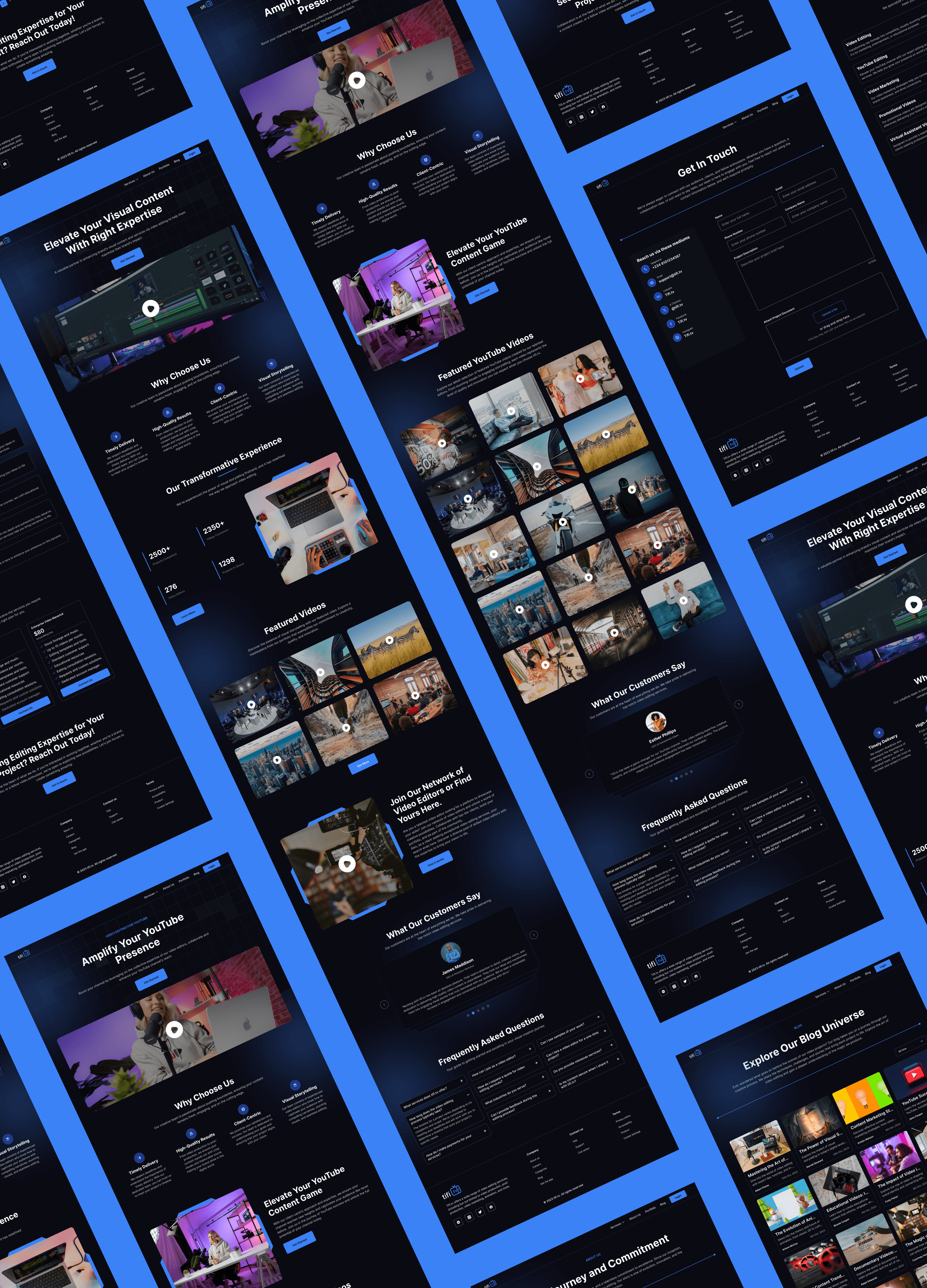 The final design for tifi.tv resulted in a visually rich yet user-friendly platform. The homepage greets visitors with impactful videos and clear calls-to-action for clients and editors. The content hub blends videos and blog posts seamlessly, offering tutorials, industry insights, and inspirational stories. Audience-specific landing pages ensure that each user type — client, editor, or enthusiast — has a tailored experience. For clients, a hiring flow makes browsing and connecting with editors efficient, while editors can showcase portfolios and gain exposure.