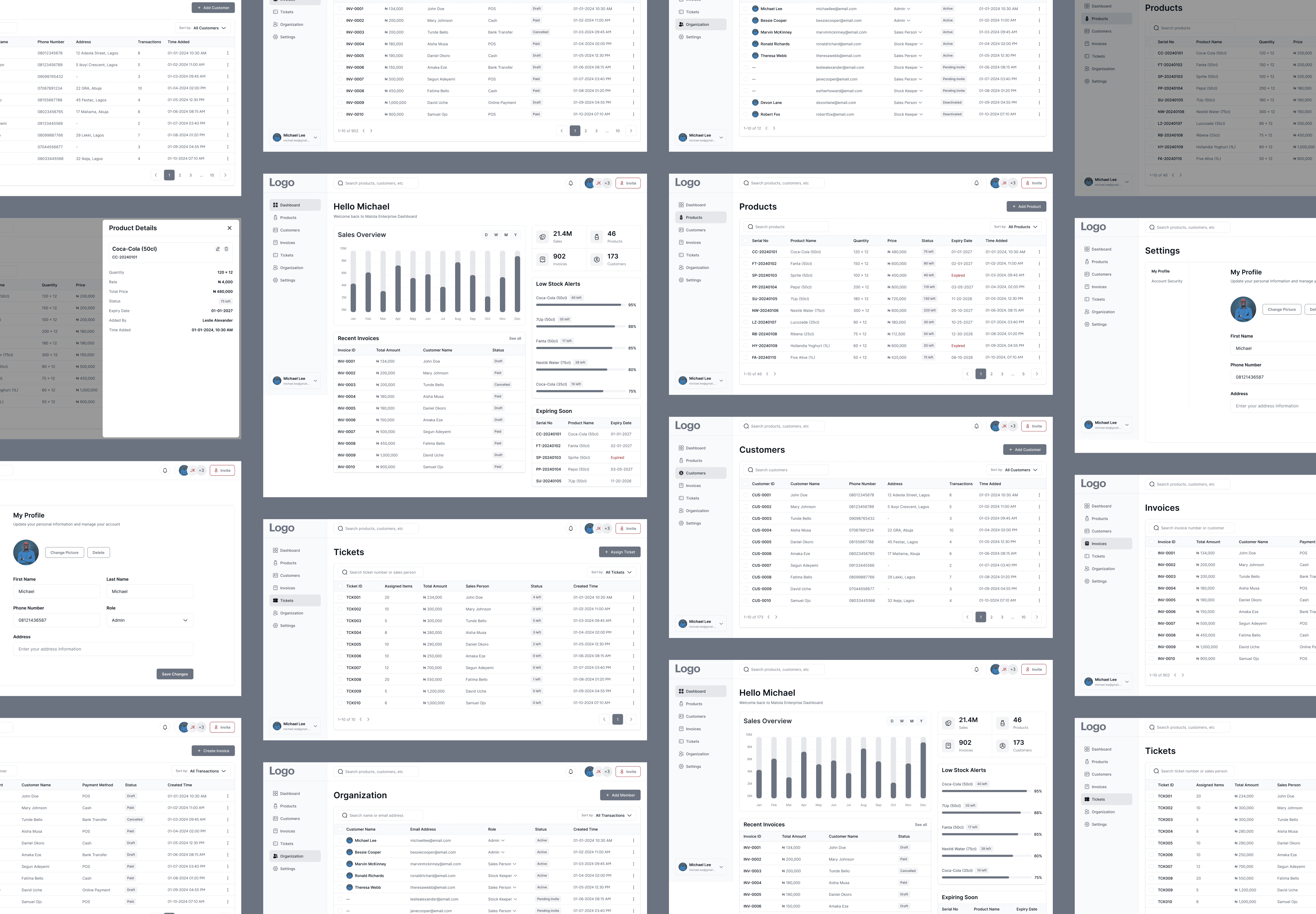 Designed flows for key actions: ticket creation, stock updates, sales transactions, and product returns.