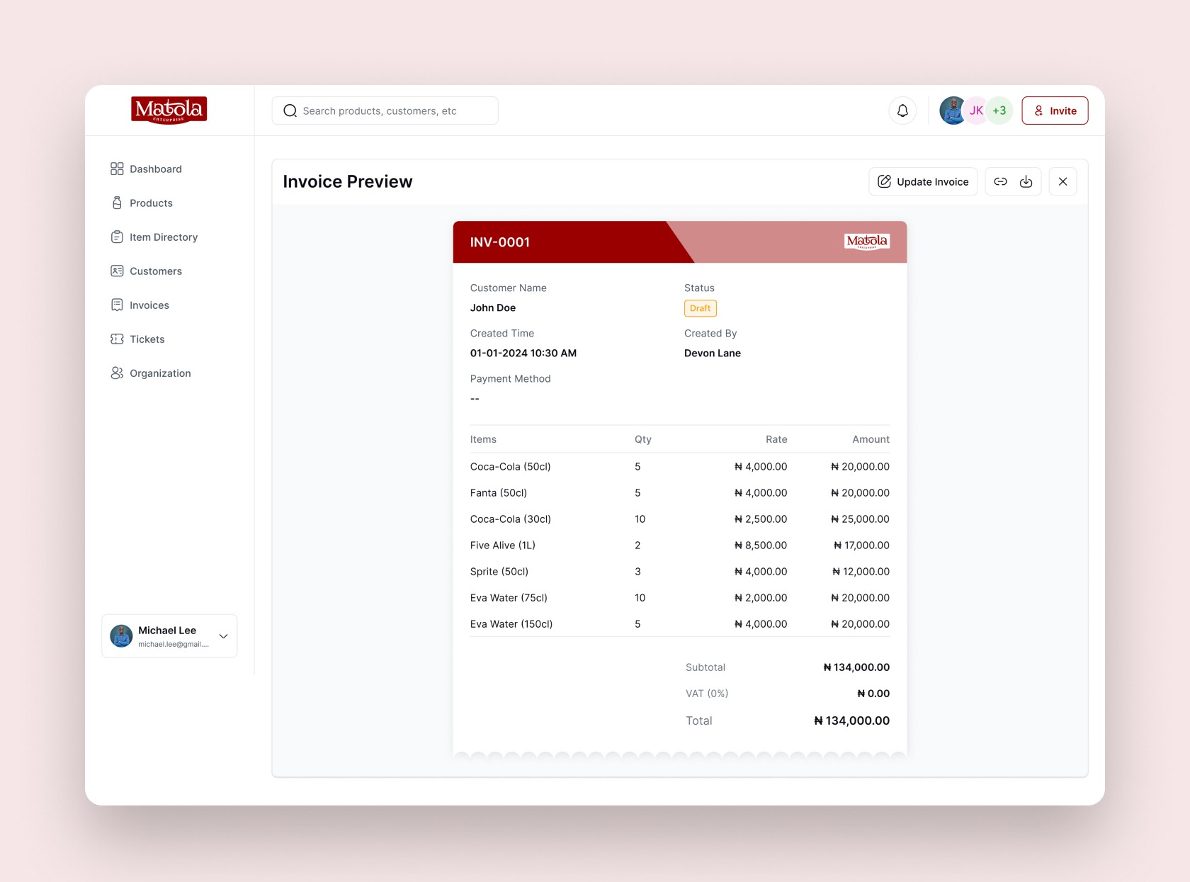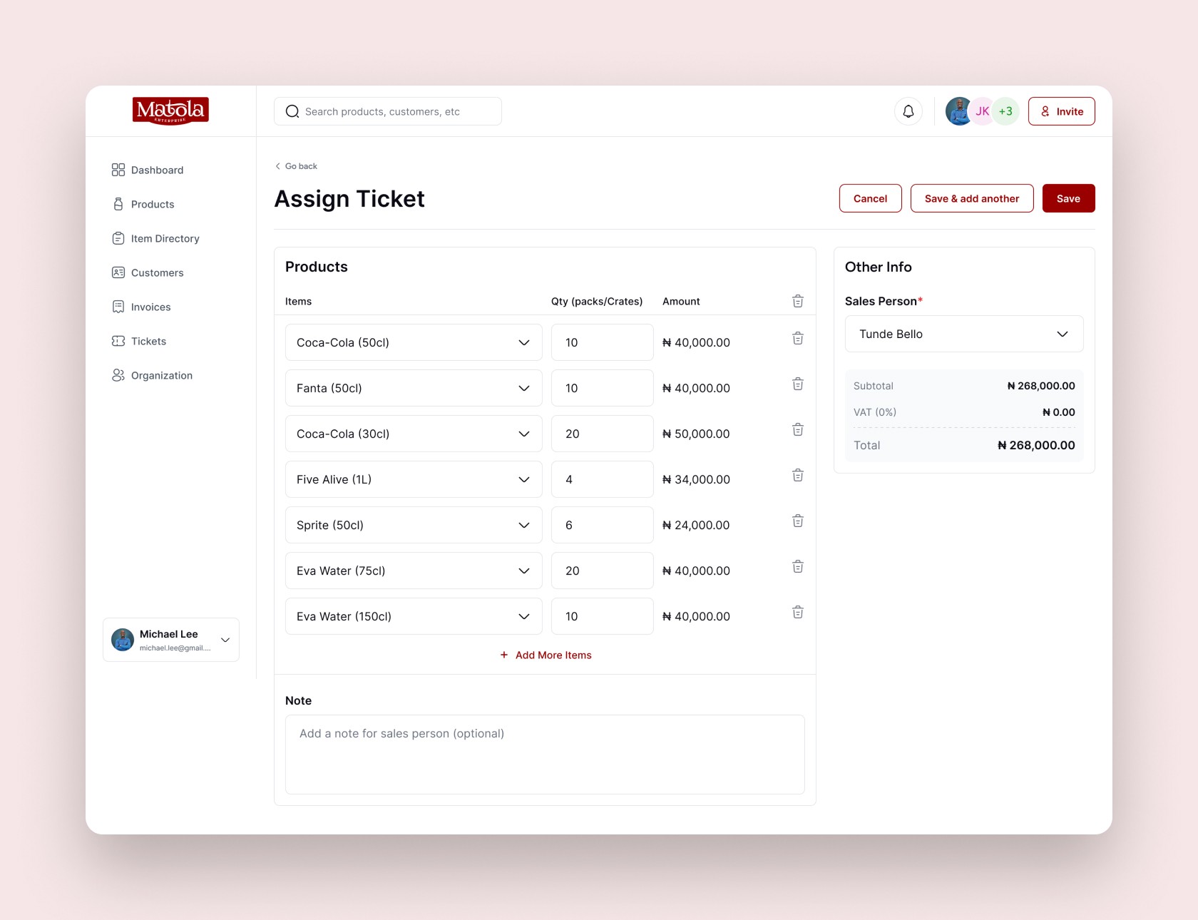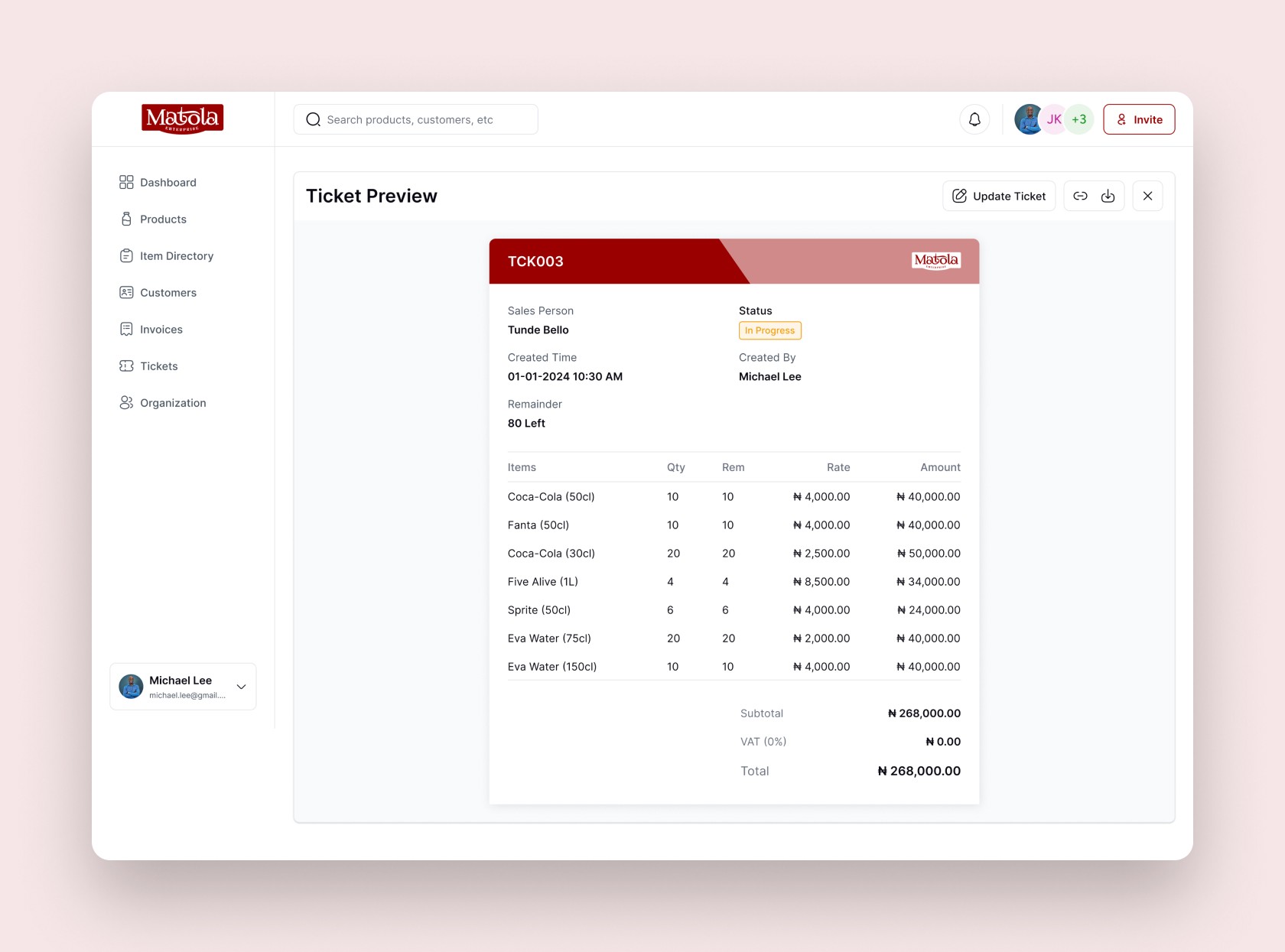 Matola Enterprise is a fast-growing distributor of soft drinks, including Coca-Cola, Fanta, Sprite, bottled water, and other beverages. With increasing demand and multiple salespersons handling daily distribution, the company needed a more efficient way to manage inventory, monitor stock movements, and generate customer invoices.